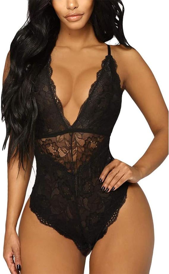 EVELIFE Sexy lingerie mulher renda body profundo V roupa interior Snap Crotch (várias cores disponiveis)